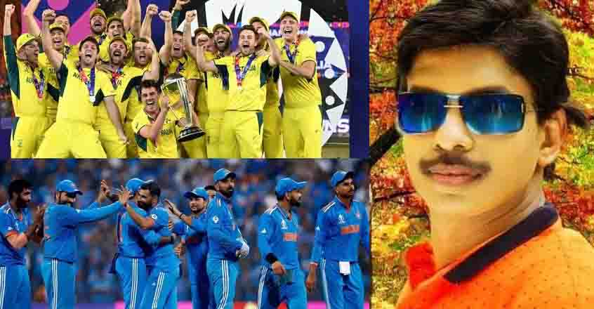 ലോക കപ്പിൽ ഇന്ത്യയെ 6 വിക്കറ്റിന് തകർത്തു World cup അടിച്ച ഓസ്ട്രേലിയൻ ടീമിന് ആശംസകൾ.. (എൻ്റെ tournament തുടങ്ങുന്നതിനു മുമ്പുള്ള പ്രവചനം ശരിയായി ട്ടോ..)