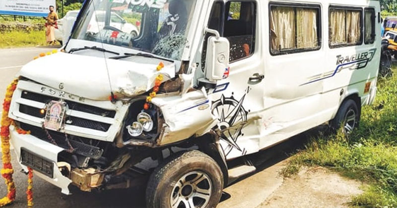 ഇന്നലെ ഉച്ചകഴിഞ്ഞ് 1.30-നായിരുന്നു അപകടം. പൊൻകുന്നം-പാലാ റോഡിൽ വഞ്ചിമല കവലയിലെ കളളുഷാപ്പിനു മുമ്പിൽ പാർക്ക് ചെയ്തിരുന്ന കാറിനു പിന്നിൽ ട്രാവലറിടിക്കുകയായിരുന്നു. ഇടിയുടെ ആഘാതത്തിൽ കാർ വട്ടംതിരിഞ്ഞ് സമീപം നിർത്തിയിട്ടിരുന്ന പിക്ക്അപ്പ് വാനിലുമിടിച്ചു.