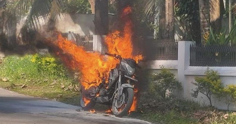 ഓ​ട്ട​ത്തി​നി​ടെ ബൈ​ക്കിന് തീ​പി​ടി​ച്ച് ക​ത്തി​ന​ശി​ച്ചു