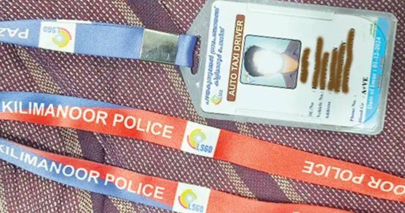 കിളിമാനൂര്‍ ടൗണിലെ ഓട്ടോ ഡ്രൈവര്‍മാര്‍ അണിഞ്ഞിരിക്കുന്നത് പോലീസ് ടാഗ്. ഗുരുതര നിയമ ലംഘനം നടന്നിട്ടും കണ്ണടച്ച്‌ പോലീസ്.