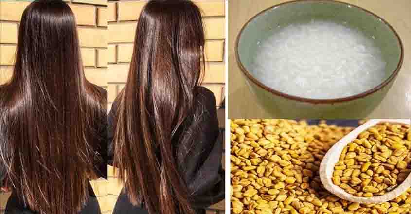 ഒരു കപ്പ് കഞ്ഞിവെള്ളത്തിന് 20 ഗ്രാം ഉലുവ രാത്രി മുഴുവൻ ഇട്ട് വച്ചശേഷം രാവിലെ ഉലുവ അരിച്ചുമാറ്റുക. ഈ വെള്ളം നനഞ്ഞ മുടിയില് സ്പ്രേ ചെയ്യുകയോ ബ്രഷ് ഉപയോഗിച്ച് പുരട്ടുകയോ ചെയ്യാം. പത്ത് മിനിറ്റിന് ശേഷം കഴുകി കളയാം. കഞ്ഞിവെള്ളം വെറുതേ തലയില് പുരട്ടുന്നതും മുടികൊഴിച്ചില് കുറയ്ക്കാൻ സഹായിക്കും.