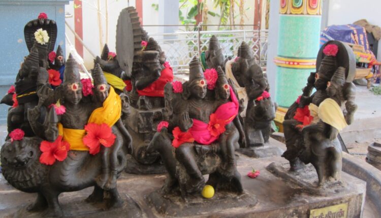 നവഗ്രഹങ്ങളുടെ പൂജയ്ക്കായി എള്ളുതിരിയിട്ട നെയ്, എണ്ണവിളക്കുകള് ഏറെ വിശേഷമാണ്. ഇവ കത്തിയ്ക്കുന്നത് ഗ്രഹദോഷപരിഹാരമാകുമെന്നാണ് വിശ്വാസം. പൂജ നടക്കുമ്പോള് വിഗ്രഹത്തിനു നേരെ നോക്കണം. അല്ലെങ്കില് ഗുണമുണ്ടാകില്ല. സധാരണ നാം ഭക്തിയോടെയും ബഹുമാനത്തോടെയും മുഖം കുനിച്ചു നില്ക്കുന്നതും കണ്ണടച്ചു നില്ക്കുന്നതുമെല്ലാം പതിവാണ്.